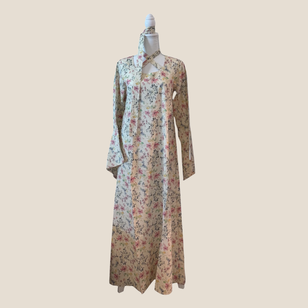 Soft cream fabric with delicate floral print.
